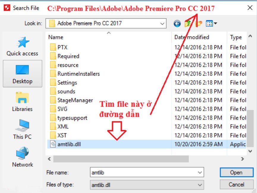 Tìm chọn file amtlib.dll