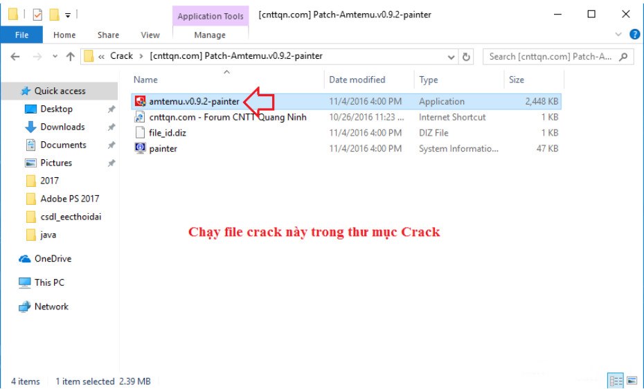 Bước 2: Bạn tắt nó đi rồi chạy file amtemu.v0.9.2-painter.exe trong thư mục crack.