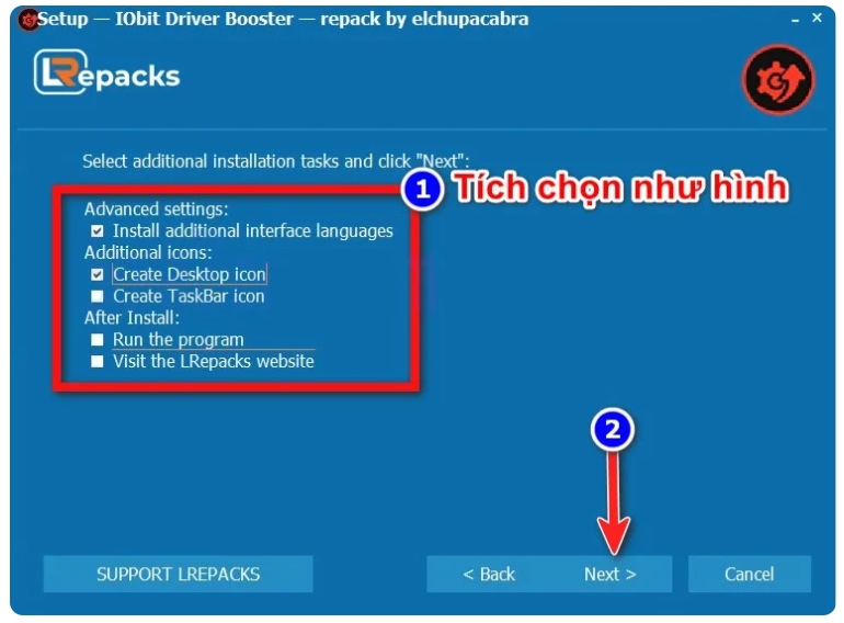 Tích chọn các tùy chọn như hình bên dưới rồi bấm Next.