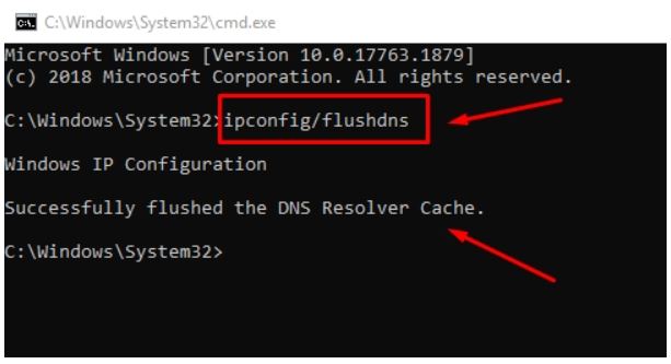 Sau đó gõ dòng lệnh ipconfig /flushdns và nhấn Enter để chạy.