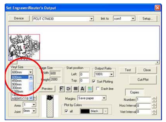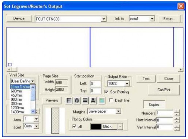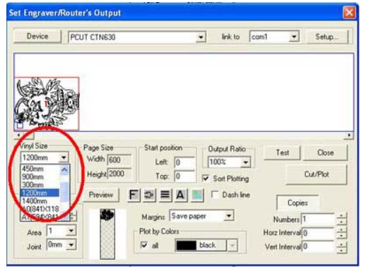 - Với máy cắt decal khổ 6 tấc ta chọn như hình dưới là khắc phục được lỗi phần mềm ArtCut cho máy cắt decal Trung Quốc này.