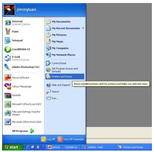 - Chọn Printers and Fax