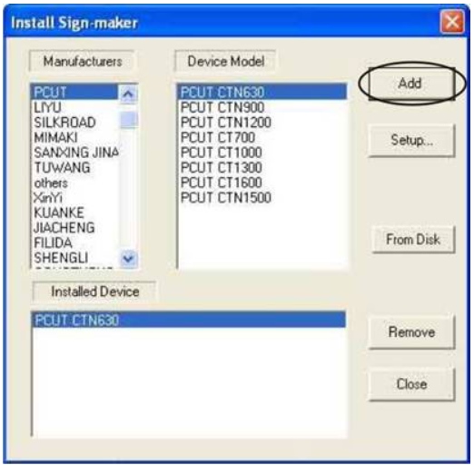 Bước 5: Click chuột vào nút ADD => Close => Ra ngoài chọn khổ cắt của máy