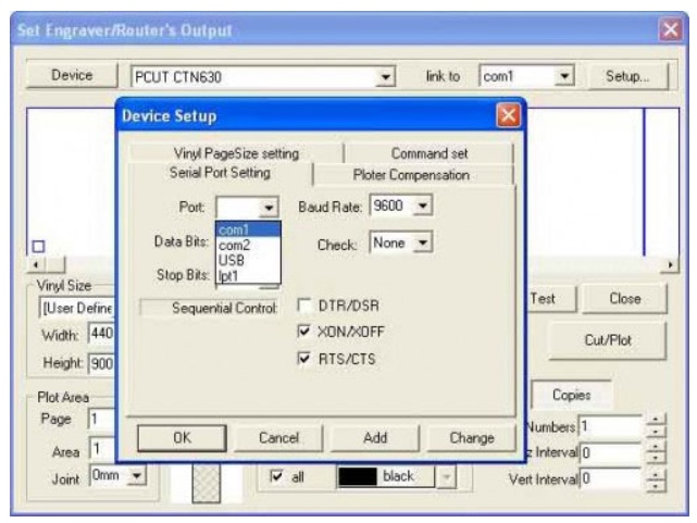 Bước 7: Để hoàn tất những bước cài đặt phần mềm ArtCut cho máy cắt decal Trung Quốc cuối cùng; trong thẻ Serial Port Setting chọn Port COM 1