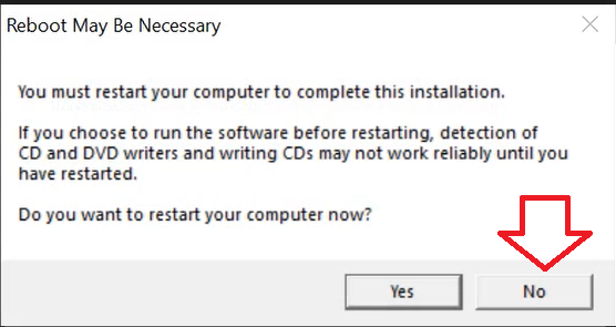 Máy tính hỏi bạn có muốn khởi động lại không. Bạn chọn No nhé.