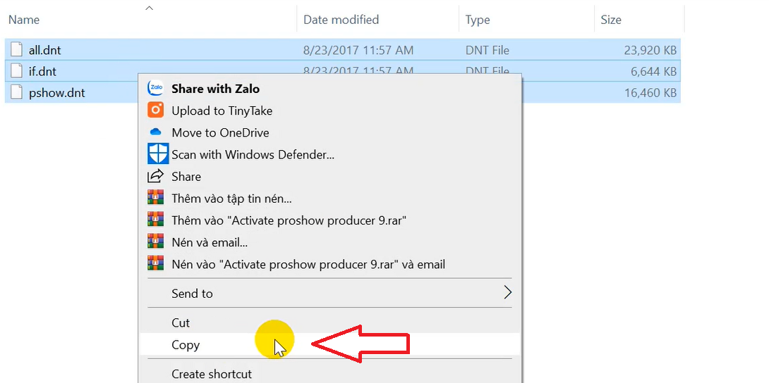 Copy toàn bộ 3 file có trong thư mục đó vào thư mục cài đặt của phần mềm ProShow Producer.