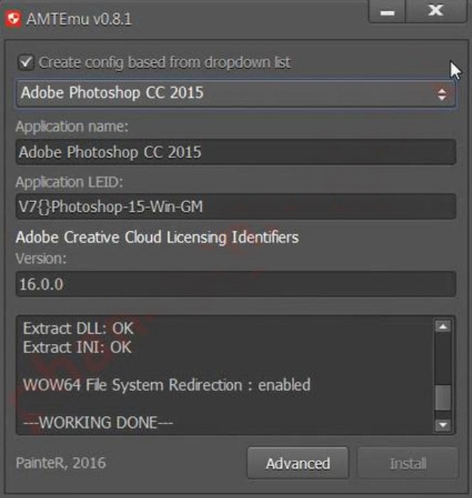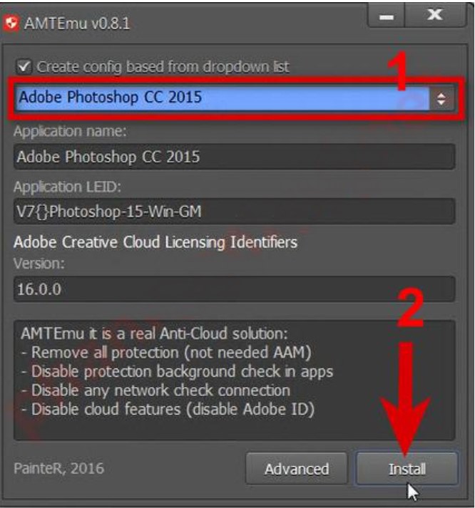 Ở mục số 1 như bên dưới, bạn chọn tùy chọn Adobe Photoshop CC 2015. Rồi bấm nút Install.