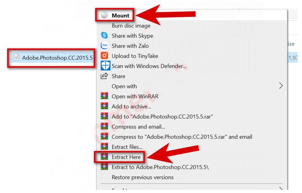 Giải nén hết sẽ có file iso như hình bên dưới. Nhấp chuột phải chọn Mount hoặc Extract Here.